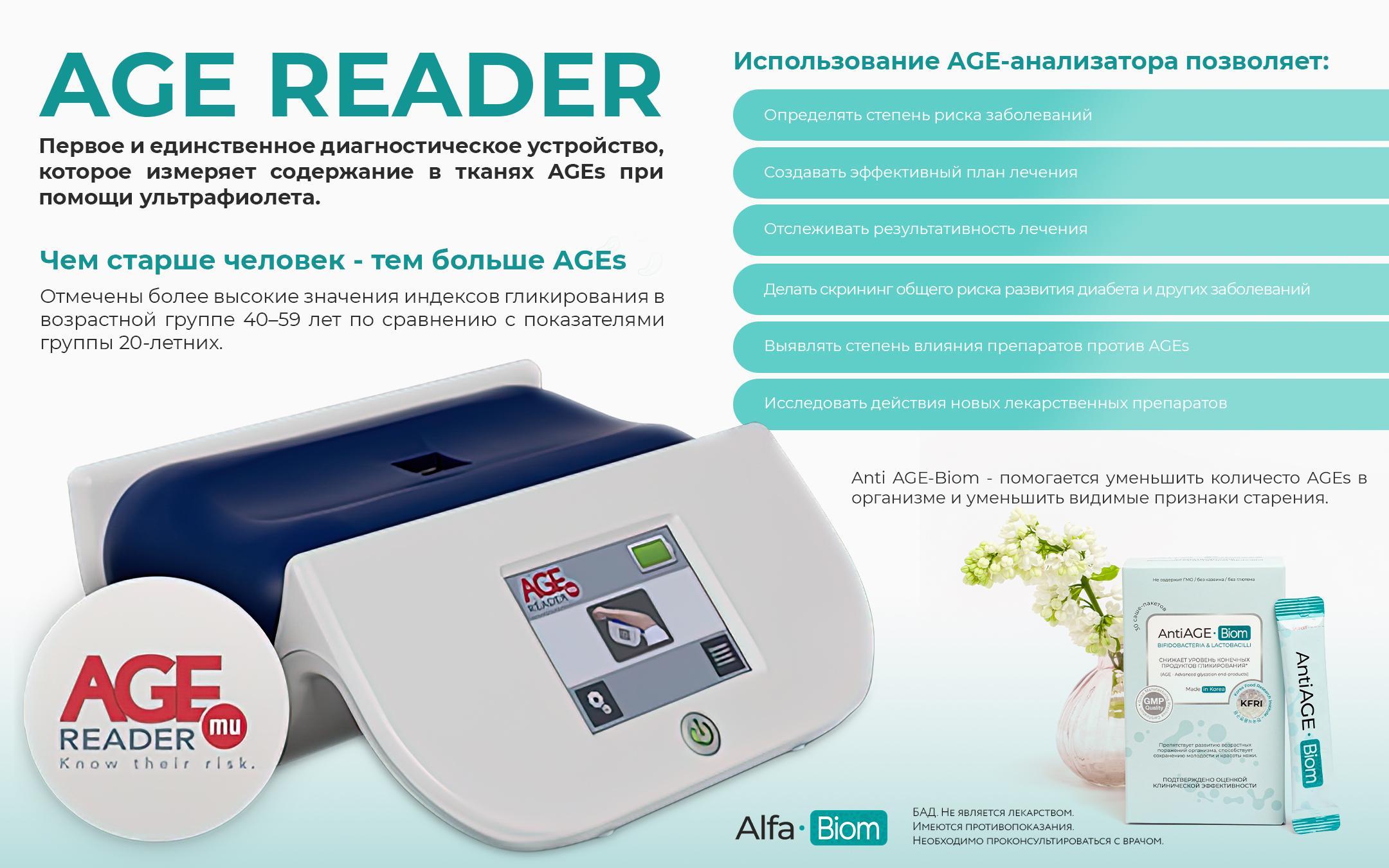 Компанией Diagnostic Technologies (Нидерланды) разработан прибор под названием Age reader. Это первое и единственное диагностическое устройство, которое неинвазивно измеряет содержание в тканях AGEs при помощи ультрафиолета.