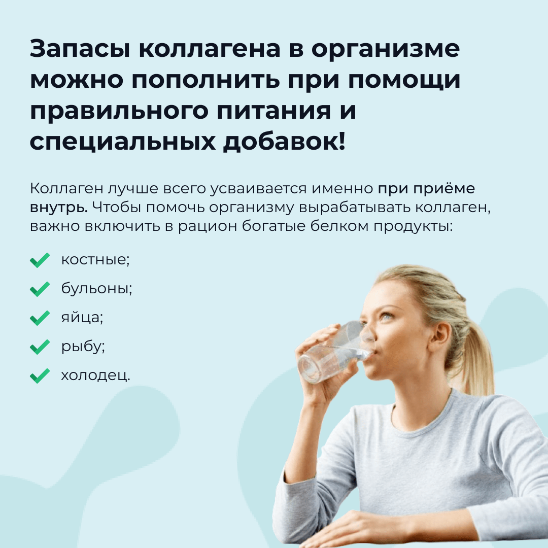 К тому же, на уровень коллагена в организме влияет большое количество факторов. Это может быть вопрос неправильного питания и нарушения водного баланса, отсутствия физической активности и недосыпы, стрессы и вредные привычки.